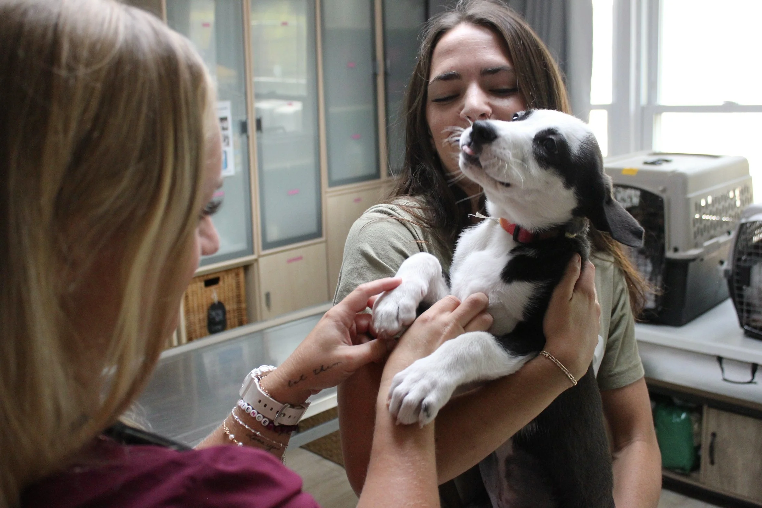 In the days leading up to transport, volunteers and veterinarians worked tirelessly to complete health checks, finalize paperwork, and prepare every pup for the journey ahead. By the time dawn broke on the day of transport, teams were walking dogs, cleaning crates, and loading vans. For four hours, a quiet convoy rolled north, carrying dogs who each had a story. Some were overlooked for months while others were finally free from lives of breeding and all headed toward open arms and soft beds waiting in Illinois.